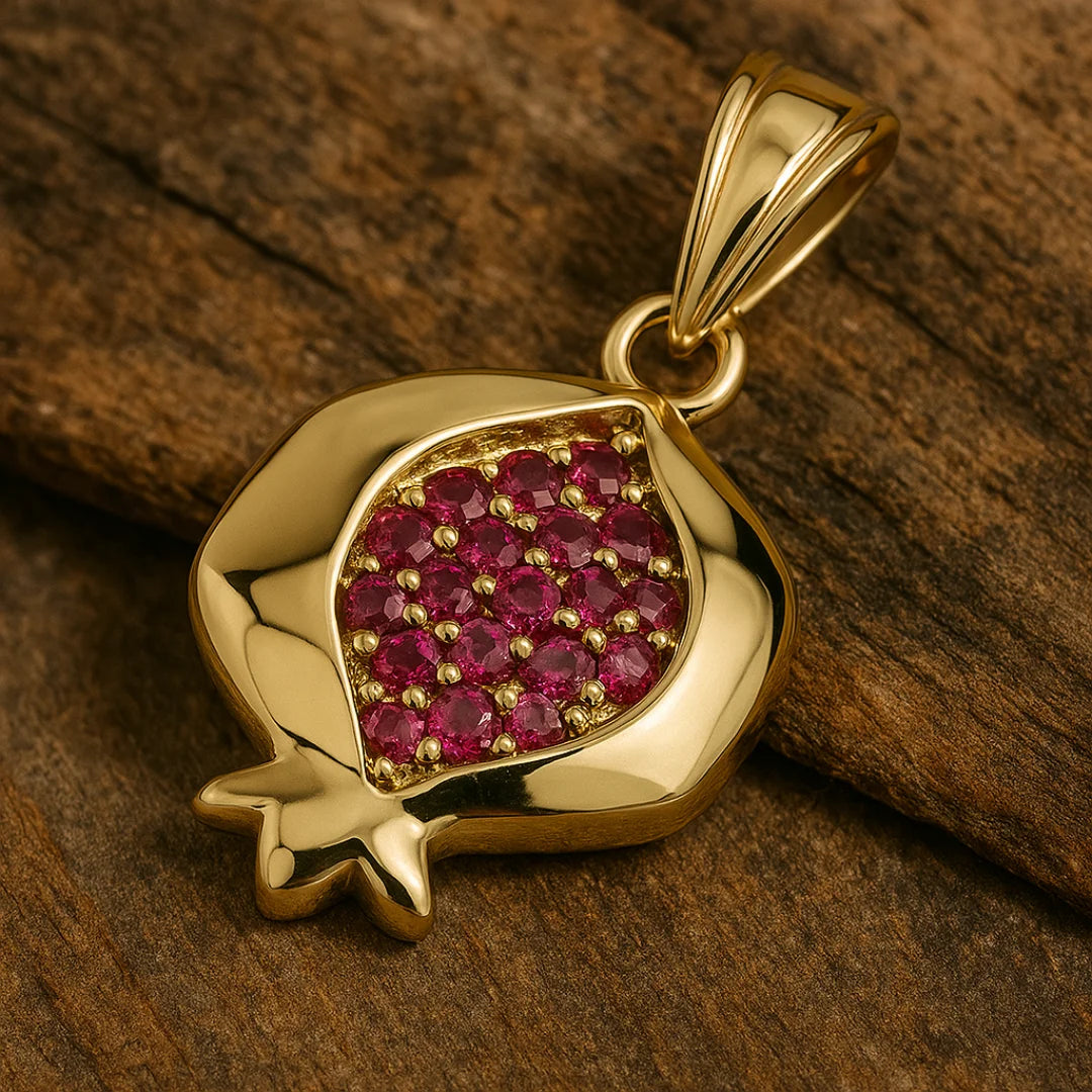 14K Gold Jerusalem Well Pomegranate Pendant