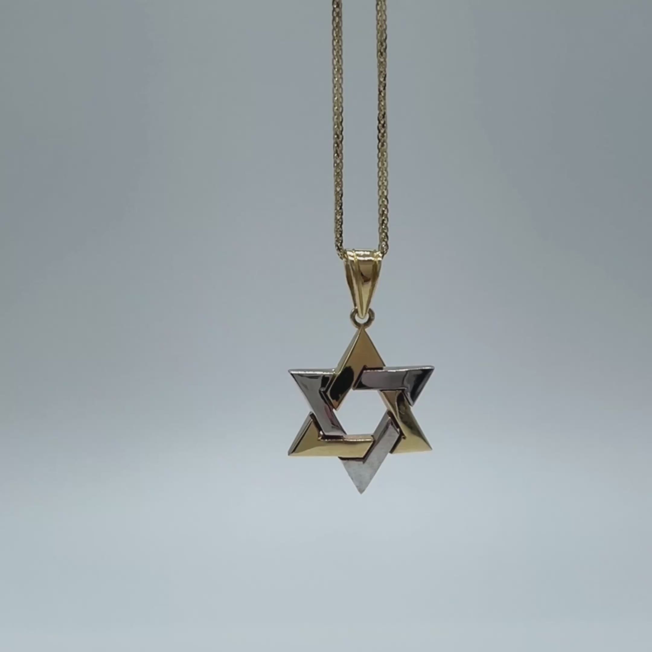 Colgante bulboso de estrella de David en oro blanco y amarillo de 14 quilates