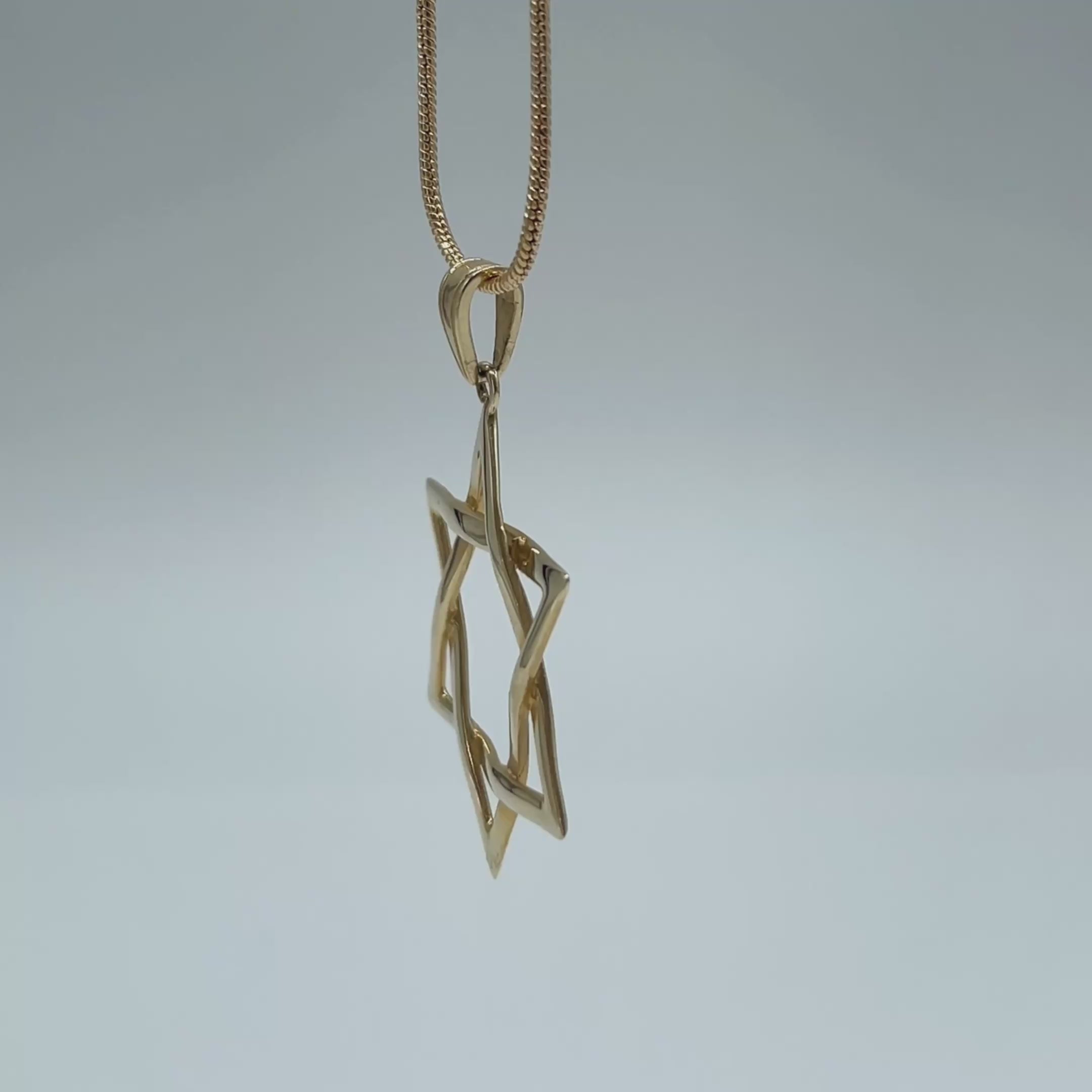 Elegante colgante de estrella de David entrelazada en oro macizo de 14 quilates