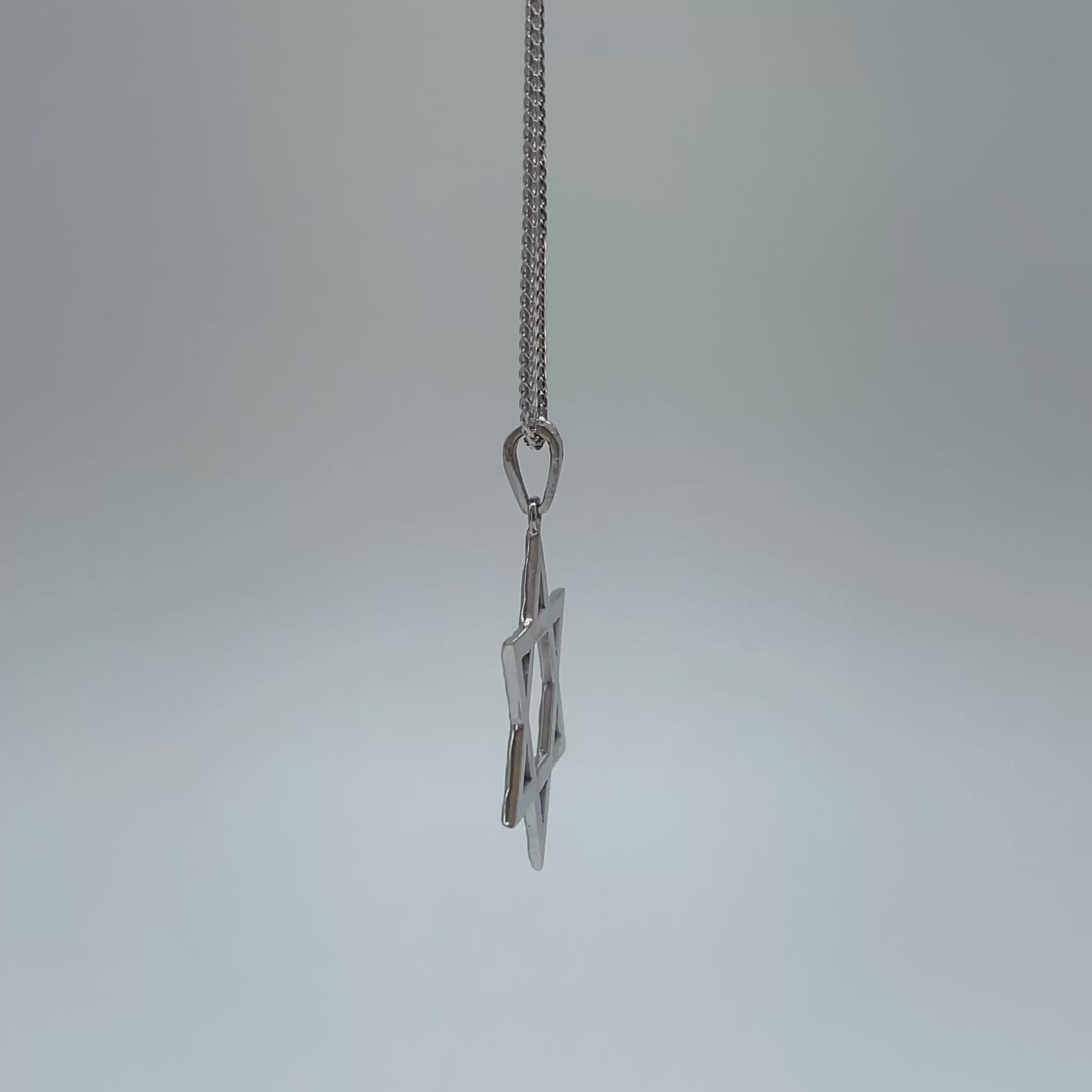 Aprecie la artesanía sagrada del gran colgante de estrella de David de oro blanco macizo de 14 quilates, un testimonio de la identidad y la herencia judías.