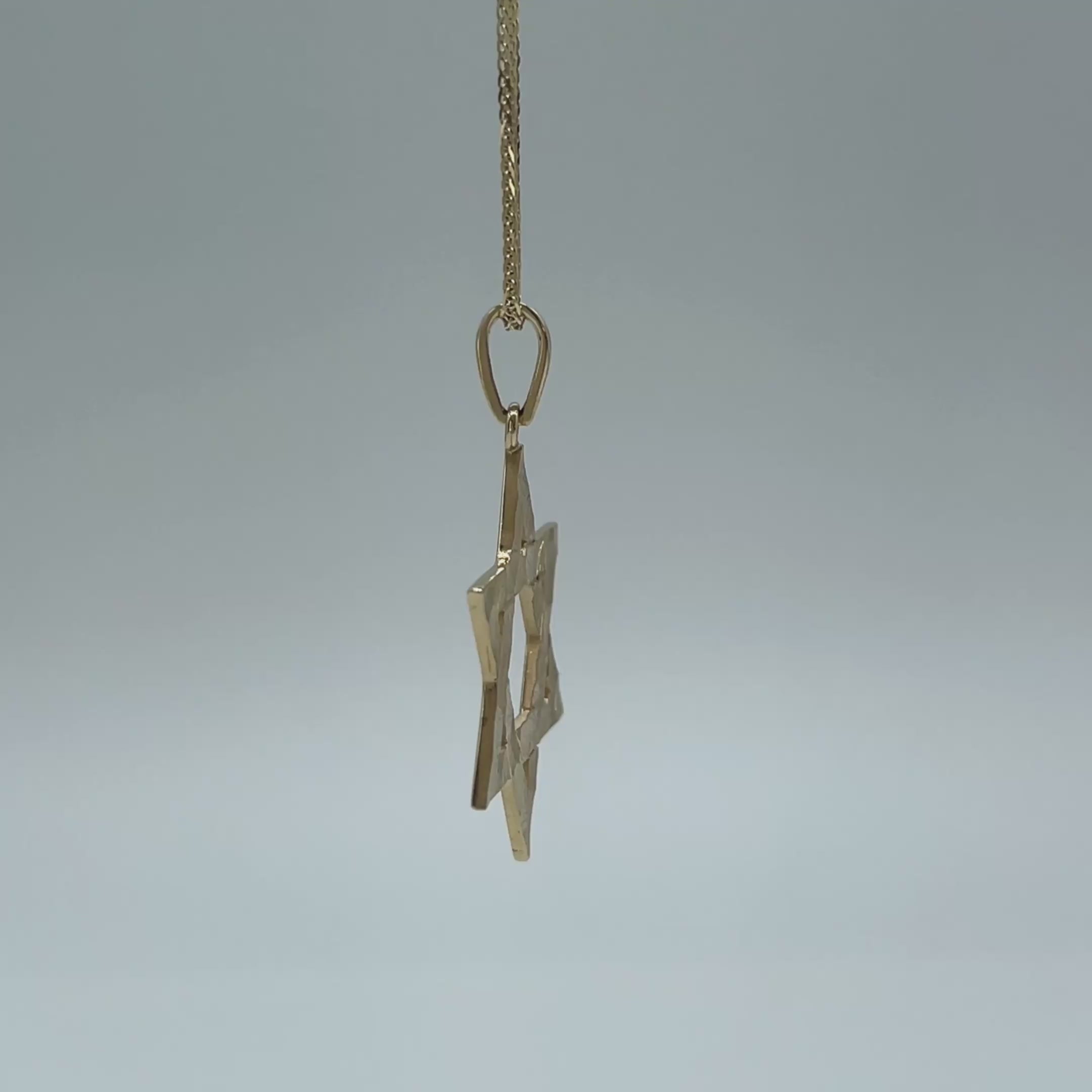 Descubra la gracia de la tradición con el colgante de estrella de David de oro macizo de 14 quilates con textura especial y un recordatorio del pacto eterno.
