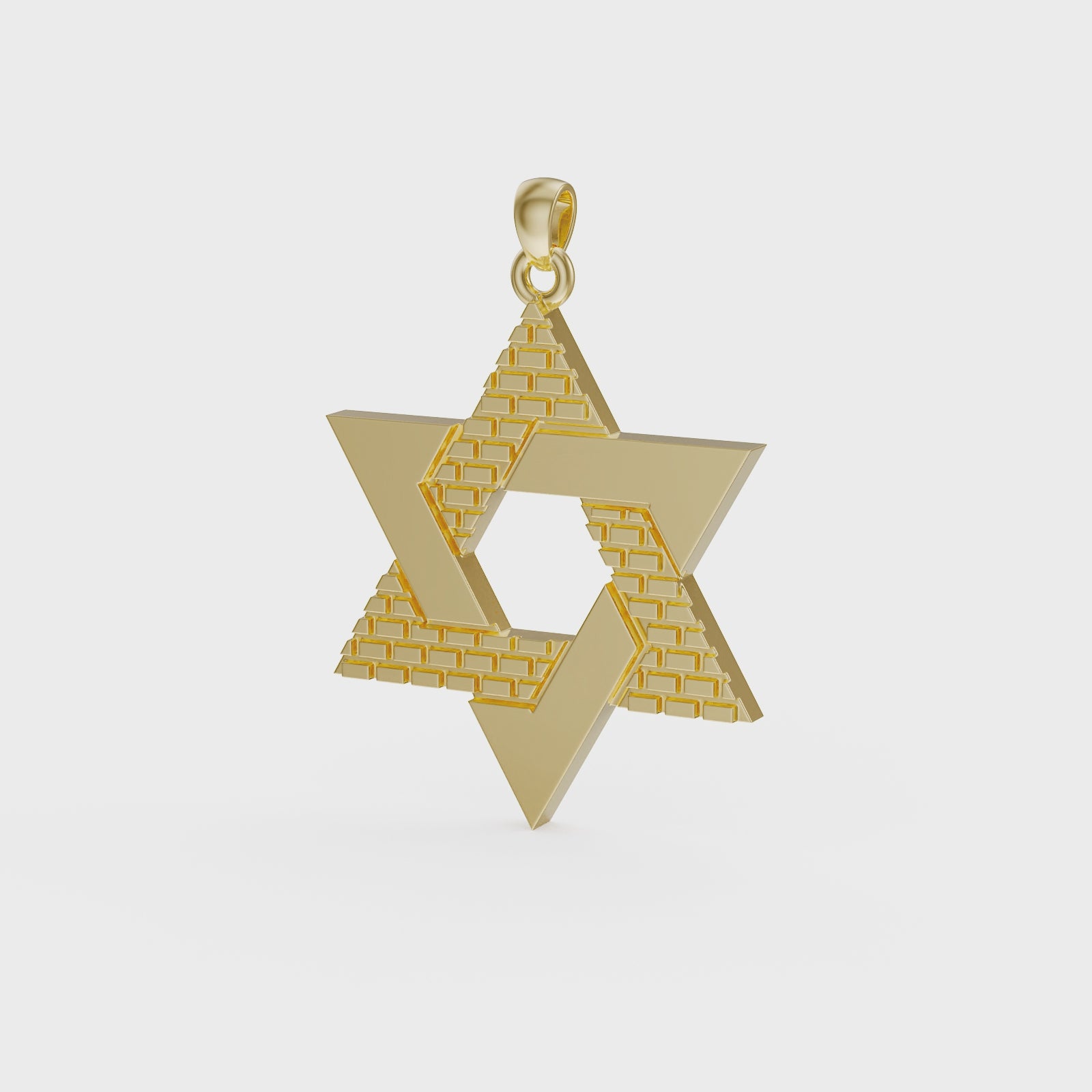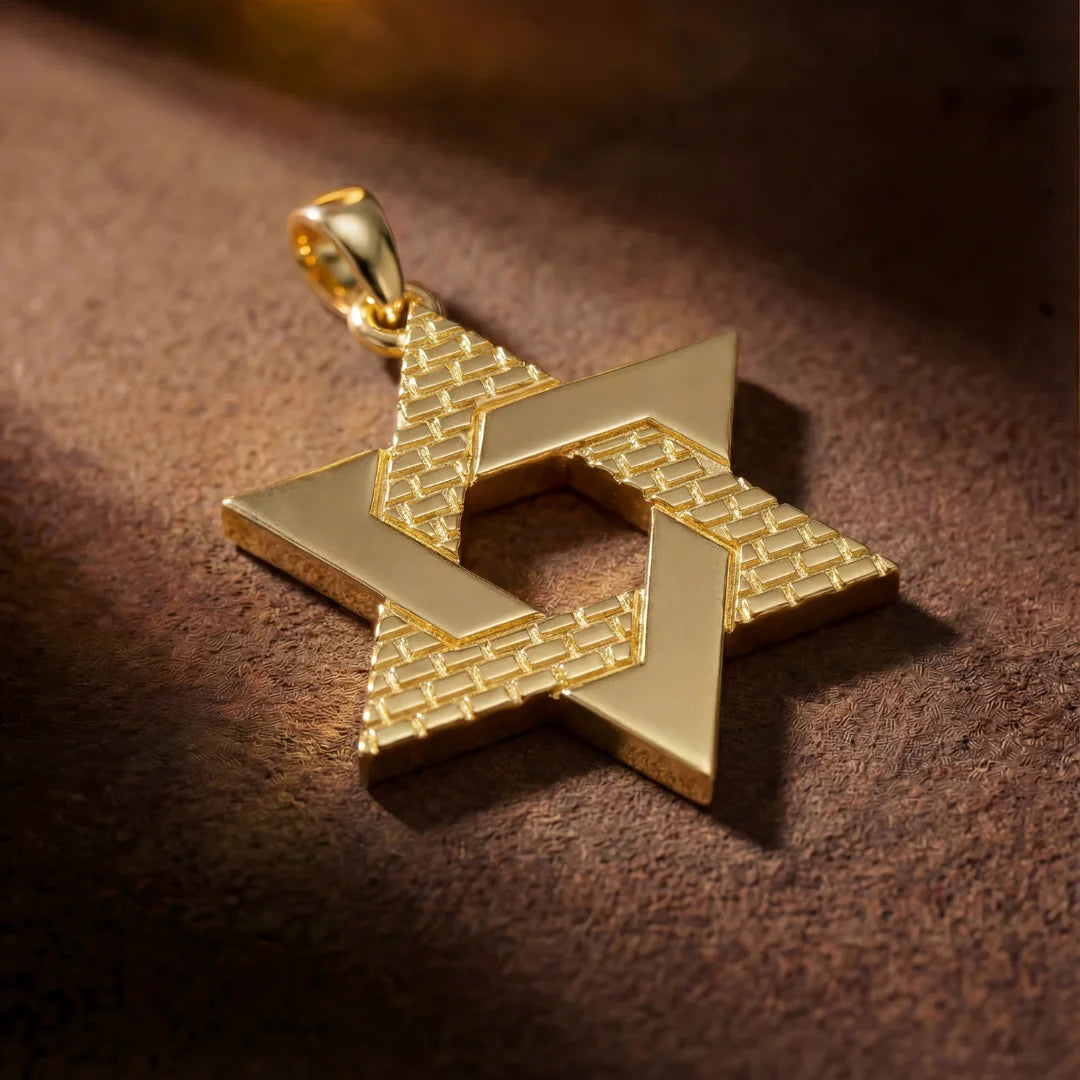 Inspiré par les pierres anciennes de Jérusalem, ce pendentif étoile de David reflète la force, la continuité et un lien durable avec le cœur de l'histoire juive.