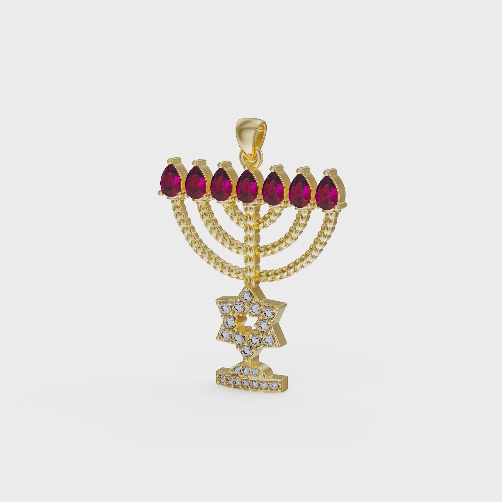 Pendentif Menorah et Étoile de David en pierres précieuses